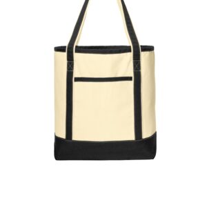 Perfect for the beach, shopping and events, these durable totes have open tops, contrast handles and contrast bottoms for classic good looks.