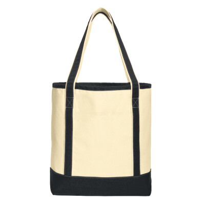 Perfect for the beach, shopping and events, these durable totes have open tops, contrast handles and contrast bottoms for classic good looks.