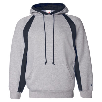 Athletic cut hoodie stands out on the field with contrast color underarm panels and shoulder inserts.