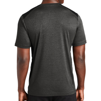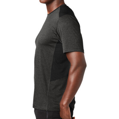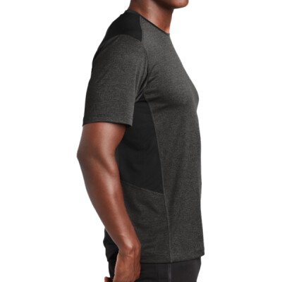 With a subtle heather texture and mesh panels at targeted heat zones, this tee has moisture-wicking technology and breathability for optimum performance.